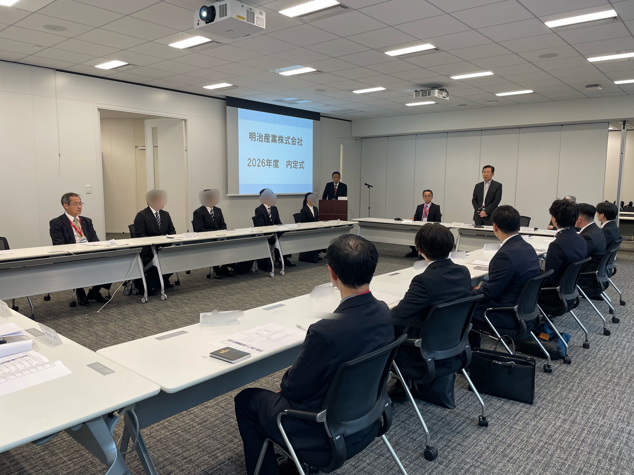 明治産業株式会社本社にて、2026年度入社予定の皆さんを対象とした入社内定式を執り行いました。